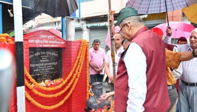सैनिक कल्याण मंत्री गणेश जोशी ने अमर शहीद मेजर भूपेन्द्र कंडारी की पुण्यतिथि पर उन्हें अर्पित की श्रद्धांजलि