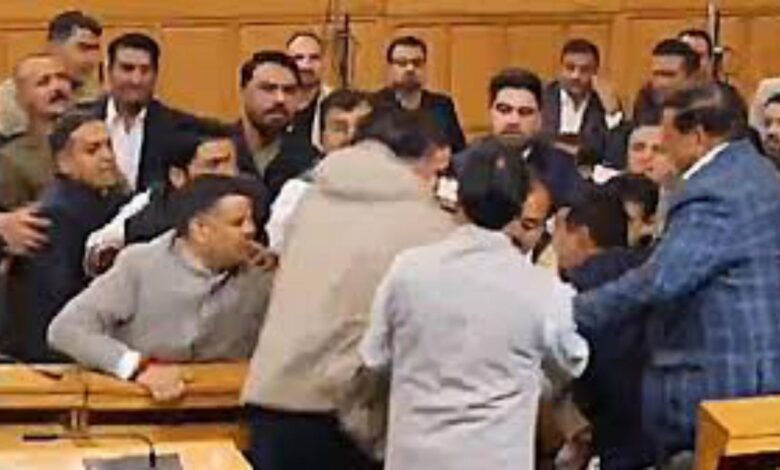 कई विधायक छक्का-मुक्की और मारपीट पर उतर आए। जिसके कारण स्पीकर को 12 विपक्षी विधायकों और लंगेट विधायक शेख खुर्शीद को बाहर निकालना पड़ा। जैसे ही सदन की कार्यवाही शुरू हुई भाजपा विधायकों ने ‘पाकिस्तानी एजेंडा नहीं चलेगा’ जैसे नारे लगाए।