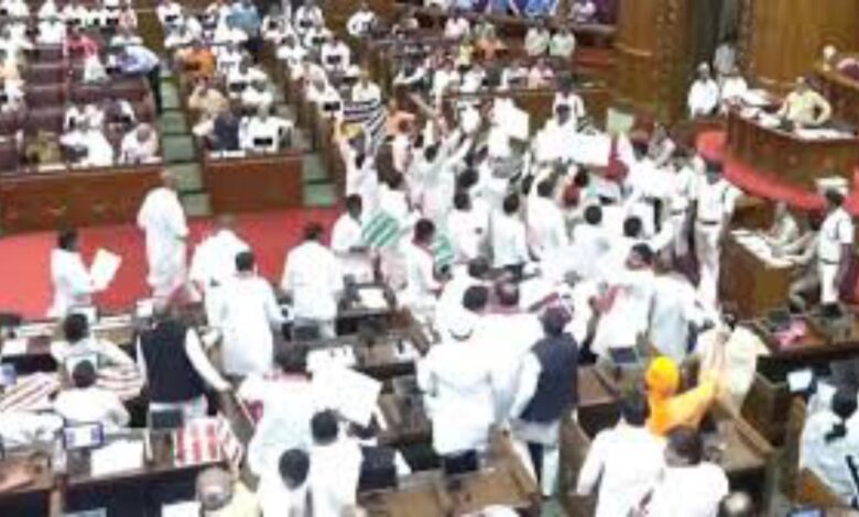 सपा विधायकों ने बिजली, बाढ़ और कानून व्यवस्था के मुद्दों को लेकर सदन में क‍िया विरोध प्रदर्शन